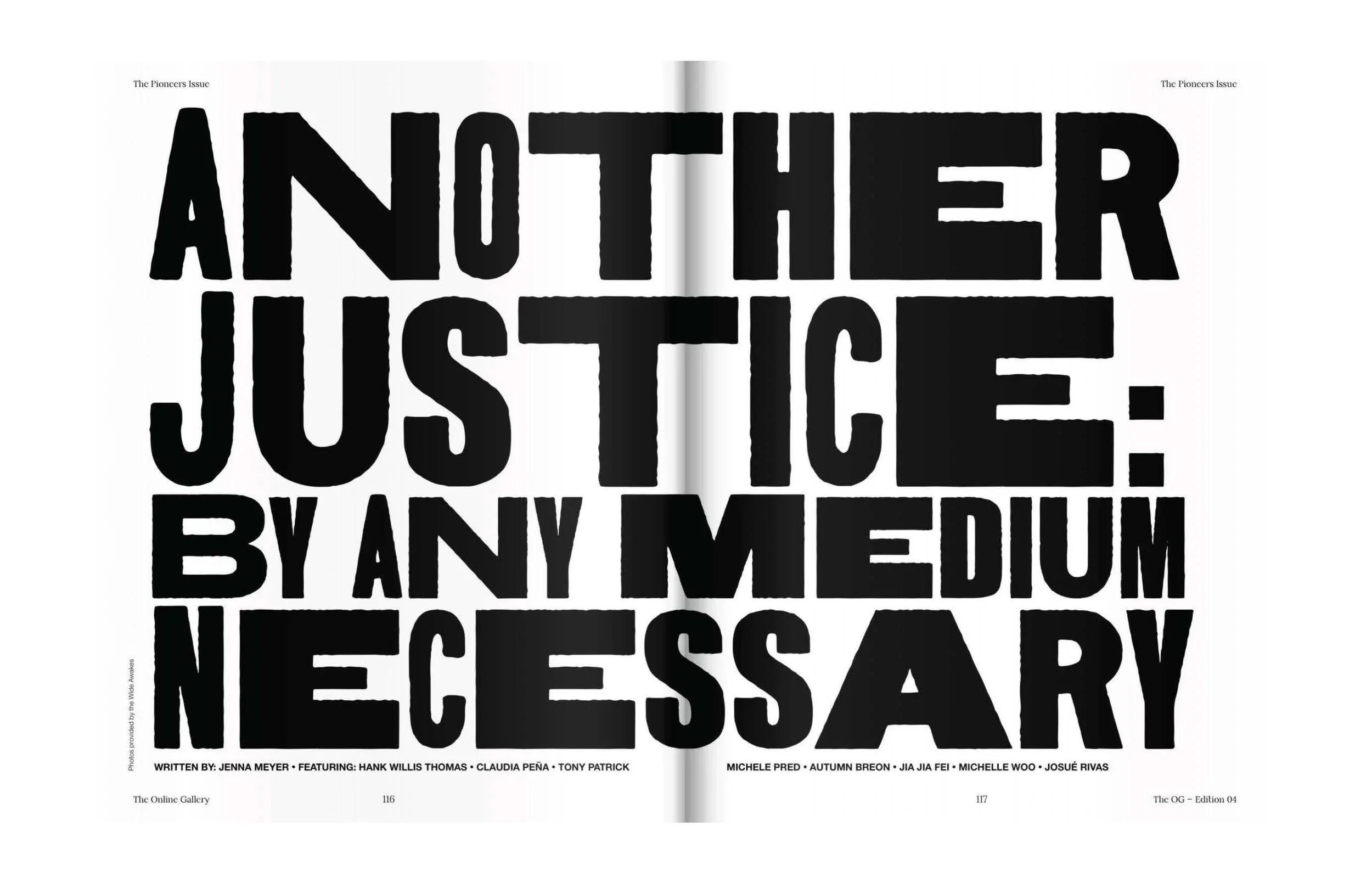 I was commissioned to write the feature article for this issue, spotlighting For Freedoms’ year-long interdisciplinary initiative, Another Justice: By Any Medium Necessary. Following the 2020 uprisings, this series invited artists to question and redefine the meaning of justice in America. Through in-depth interviews with participating artists, I wove together their voices and visions into a narrative that highlights art’s role as civic engagement, discourse, and direct action.